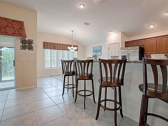 Enclosed lanaiDining roomSeating at the countertopStainless steel appliancesRoman walk-in shower