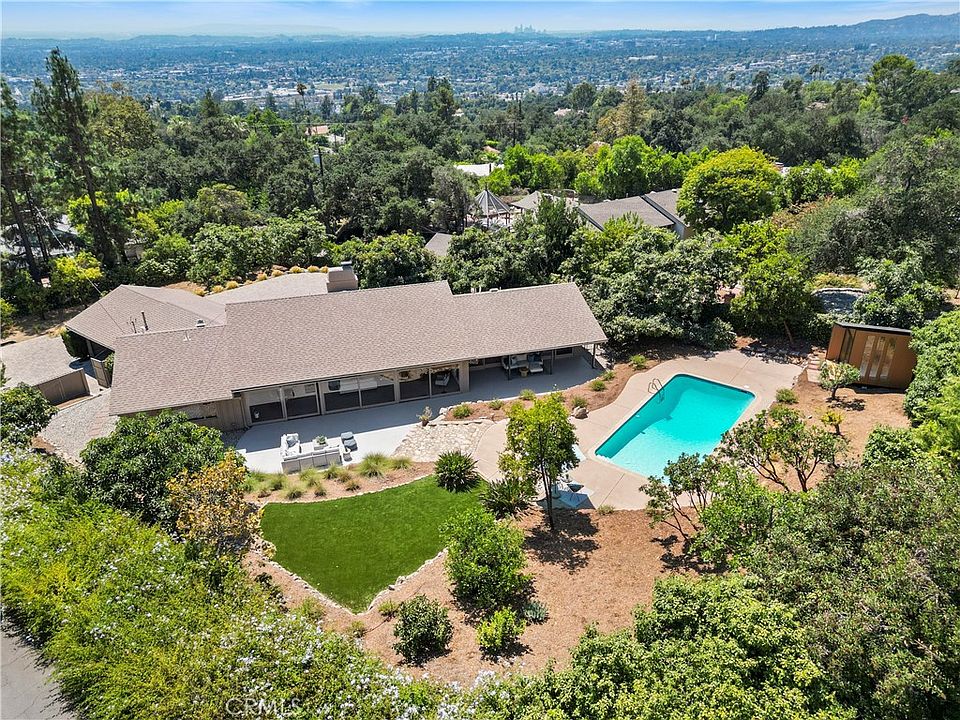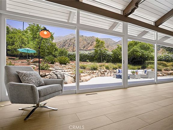 Offering $25k credit toward rate buy down for 5.99% 30 year fixed rate! With 32,000 sq ft of usable land, 26 mature fruit trees, this mid-century modern masterpiece is a private paradise with a gorgeous pool, newly built detached home office & breathtaking views of the foothills! Enter through the automated gate onto a 10-vehicle motor court laid with elegant pavers. Step inside an awe-inspiring great room with 18 ft vaulted ceilings, exposed beams, custom light fixtures and ceramic white oak tile floors, anchored by a gas-starting, wood-burning fireplace. Floor-to-ceiling glass frames lush mountain views and floods the entire width of the house with natural light. Host gatherings that easily flow between indoors and outdoors with massive sliding doors and multiple outdoor spaces. Enjoy a gourmet kitchen featuring a waterfall quartz island and hidden custom walnut cabinets, Japanese porcelain tile backsplash and stainless steel professional grade KitchenAid appliances costing ~$20k. Family and guests will appreciate the privacy offered by a split-bedroom layout in opposite wings. Soak in the views every morning from your marvelous primary suite showcasing floor-to-ceiling glass sliding doors with automated black-out shades and access to a bonus covered patio. The spacious spa-like bathroom features a floating dual vanity, bold subway tile, a frameless glass walk-in thermostatic dual rain and hand-held shower, separate water closet and massive custom walk-in closet. The other two bedrooms have large picture windows with great natural light and custom built-in shelving. They share a bathroom with double sinks, honeycomb tile flooring, and a thermostatic tub/shower. A generous laundry/mudroom offers plenty of storage and direct access to the garage. The outdoor space is fully hedged and gated; a 0.75 acre oasis including multiple patios, a sparkling pool, fruit trees including avocado, plum, peach, loquat, and citrus and a turf area for picnics or practicing your short game. A brand new detached home office comes with A/C, electrical wiring and stunning floor-to-ceiling views. There’s even room to add a pickleball court by the avocado grove! Enjoy the best of both quiet and convenience with an easy 8-minute commute to the 210 freeway, Trader Joe’s, Whole Foods, Old Town Pasadena, hiking and all the beautiful parks of Pasadena. This home offers luxury, comfort and stunning design that brings the outdoors into every room. Schedule your private showing today!