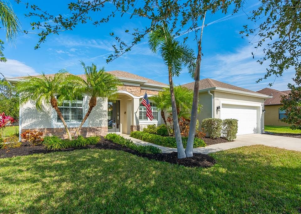 This beautiful custom-built Medallion home embodies the Florida lifestyle; offering three bedrooms, a study, two bathrooms, and two car garage located on a large lot in the desirable neighborhood of Stone Walk. As you walk through the front door you are greeted with an inviting open floorplan leading into the great room. The gourmet kitchen makes cooking a delight with an oversized island, solid wood cabinets, granite countertops, closet pantry, and stainless-steel appliances, and pendant lighting. After a long day at the beach, relax outside on your spacious tiled lanai and pool area with an outdoor kitchen with refrigerator, sink, and gas grill. This home boasts many wonderful features and upgrades such as split floorplan, crown molding, tray ceilings, French doors, upgraded light fixtures and ceiling fans, artistic niches, custom built-ins, plantation shutters, custom window treatments, abundant closet space, and much more. Close to world-class beaches, fine dining, shopping, "A" rated schools, and close access to I-75. The only thing missing is you.