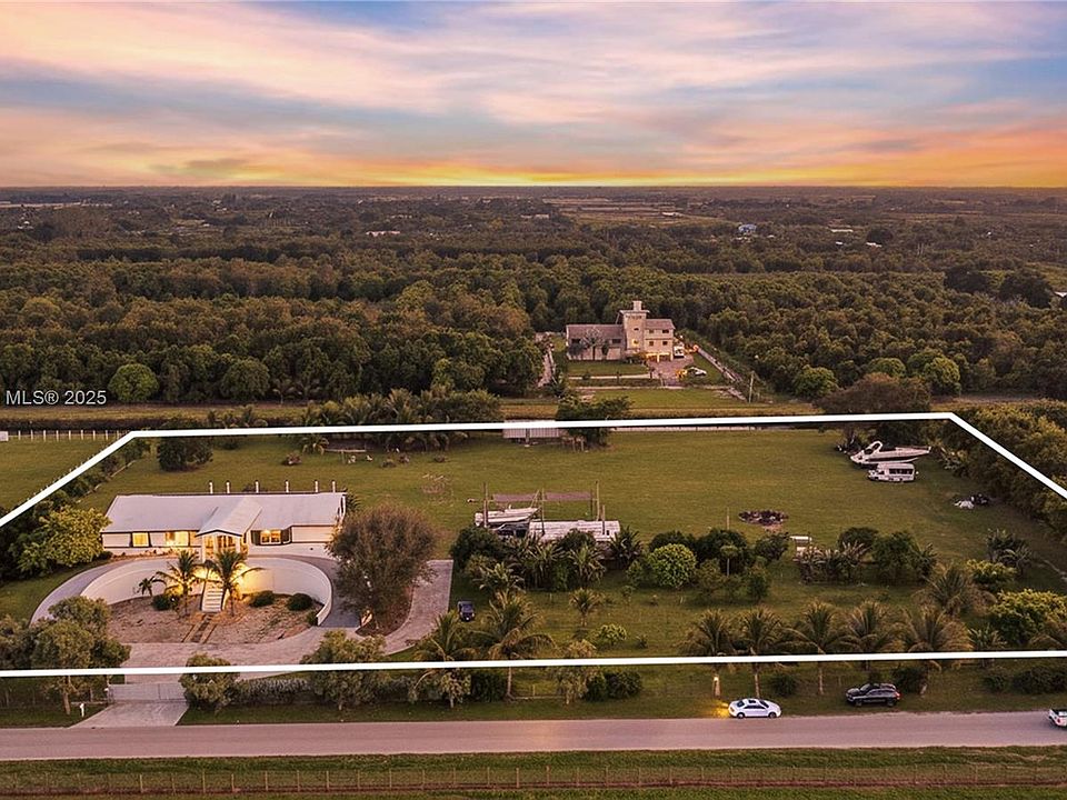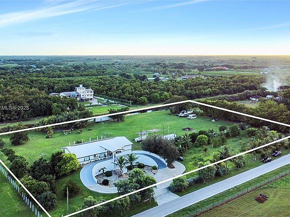 STOP THE SCROLL, THIS IS IT! Stunning 2019-built ranch estate on nearly 4 acres in the highly sought-after Redlands! This 6BR/6BA luxury home offers over 11,000 sq ft of living space with a circular driveway entrance & high-end finishes throughout. Designed for sustainability & privacy, the property features 60 solar panels with a 20KW InPhase battery backup, EV charging stations & fertile land with mature mango, papaya & carambola trees. Enjoy a concrete roof, PGT impact windows/doors & full hurricane-proof construction. Includes a fully built underground bunker/garage with space for up to 18–20 vehicles, wine cellar & a pool shell with piping under the deck. Horse trails & the scenic C-102 canal nearby! Lot can be divided and 2-3 homes can be built for a true multi-generational compound!