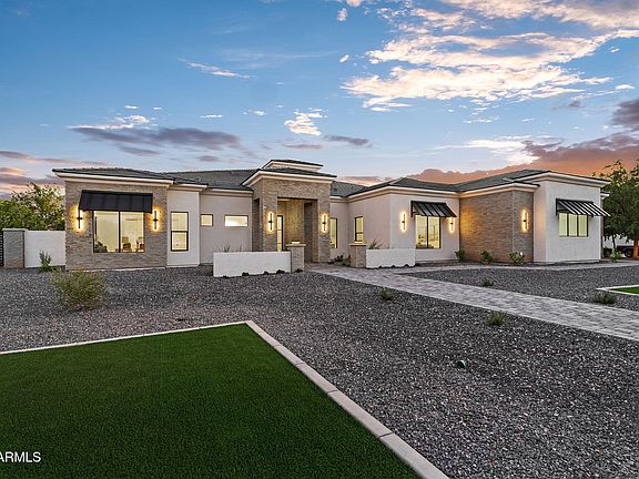 Park your vehicles in an oversized 3 car garage, finished with epoxy flooring and room for custom cabinetry. The fully landscaped front yard features lush synthetic turf, elegant paver walkway and driveway and thoughtfully curated selection of desert plants and trees. Don't miss this rare opportunity to own a premium lot and newly built home in one of Queen Creek's most desirable neighborhoods!