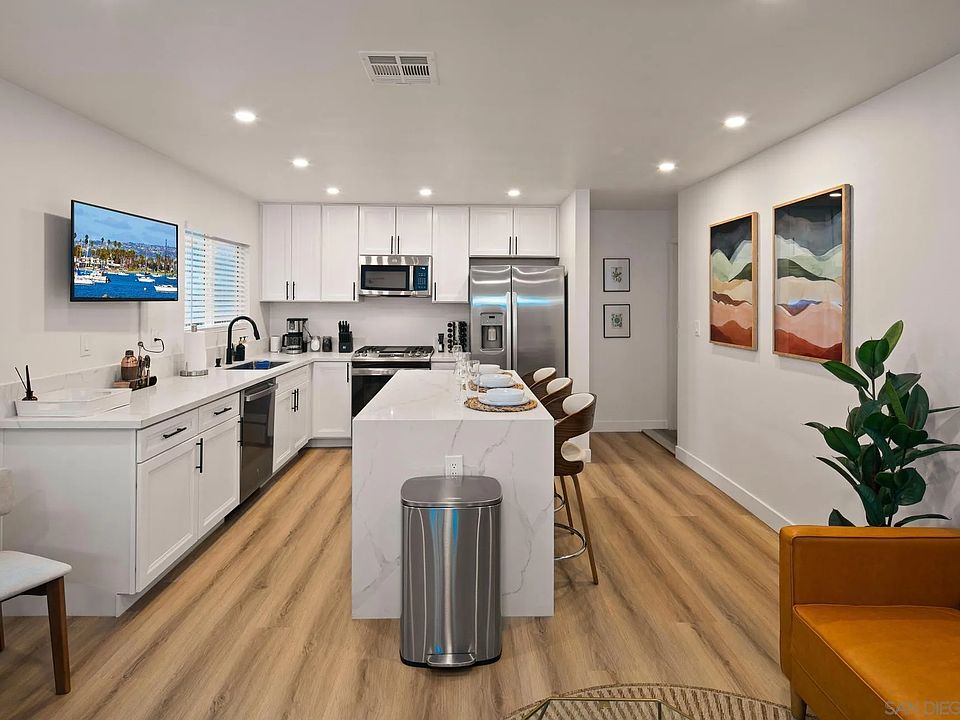 This fully renovated TRIPLEX is a rare find in Ocean Beach. No expense spared from the kitchens to the bathrooms and everything in between! Owned solar panels and no deferred maintenance! Whether you’re an investor seeking strong rental income or a homeowner looking to live in one unit while renting out the others, this property is completely move-in ready. With the owned solar panels, keep your costs low and efficient! Each unit features brand-new kitchens equipped with quartz countertops and stainless steel appliances, modern bathrooms, updated flooring, and fresh finishes throughout. Unit A (4 beds, 2 baths) boasts a spacious, contemporary layout with central A/C, ideal for an owner-occupant or a high-value rental. Unit B (2 beds, 1 bath) offers efficient mini-split climate control in each bedroom, while Unit C (studio, 1 bath) serves as the perfect cozy retreat. A shared outdoor common area with a fire pit and jacuzzi provides a welcoming space for tenants and guests, along with community laundry for added convenience. This property is ideally positioned for both short-term and long-term rental success, with easy freeway access and close proximity to grocery stores, parks, and beaches. Live in one unit and rent out the others for immediate income, or lease all three for a solid return on investment. Don’t miss this rare opportunity to own a multi-unit property in one of San Diego’s most desirable beach communities!