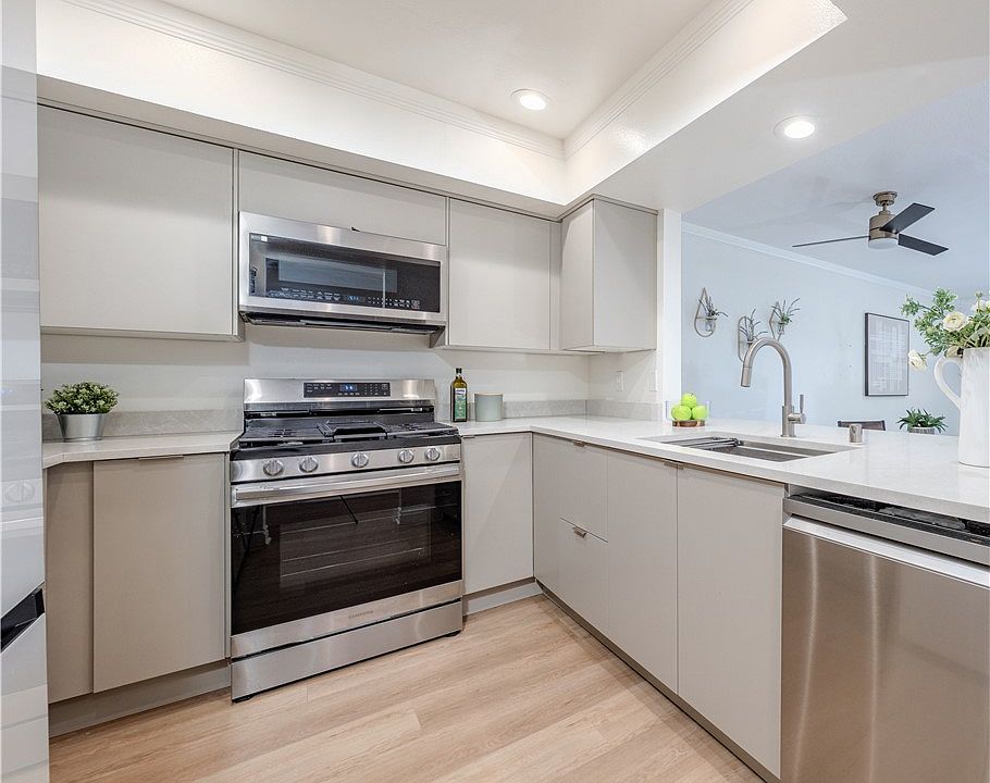 This meticulously renovated 3-bedroom, 2.75-bath condo boasts a generous 1,482 square feet of inviting living space that seamlessly blends comfort and style. The main level welcomes you with two spacious bedrooms, each thoughtfully designed for relaxation, alongside two elegantly appointed bathrooms. The highlight is the primary suite, featuring a luxurious, remodeled en-suite bathroom that provides a tranquil retreat along with a large walk-in closet. Convenience is key with a dedicated laundry area on this level. Ascend to the upper floor, where natural light floods a bright and airy family room, creating an inviting atmosphere for gatherings. The stylish kitchen, perfect for culinary enthusiasts, showcases modern appliances and sleek finishes, while the adjoining dining area offers an ideal setting for entertaining family and friends. The second floor also includes a third bedroom and an additional bathroom, perfect for guests or as a productive home office space. Throughout the condo, you'll discover a host of thoughtful upgrades, including luxury vinyl flooring, fresh, soothing paint colors, mirrored sliding closet doors, and new window treatments that enhance the flow of natural light. This exceptional unit comes with two assigned parking spots in a secure underground garage, along with convenient lockable storage. HOA pays for trash and water. This community is VA approved. Situated just minutes from the vibrant Belmont Shores, you're also a short drive away from Shoreline Village, the enchanting Long Beach Aquarium, picturesque golf courses, and easy access to freeways and the beach. This prime location is perfect for those who embrace an active lifestyle. Don't miss the opportunity to call this stunning residence your home!