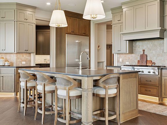 Unique angled islandLarge prep pantryPrep kitchenInviting sunroomVaulted spa-inspired bathroomBuilt-in cabinetryDual vanities