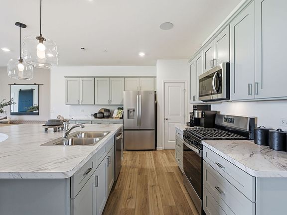 Welcome to Kensington Fields, in the Hoffman Estates High School District. 2-story townhomes near shopping, dining and entertainment. BRIGHT AIRY END UNIT YOU WILL LOVE! SPRING 2026 CLOSE! The Bowman is a beautiful two-story townhome with a large, curved kitchen island and plenty of room for gathering family and friends. Your new open concept home is energy efficient and includes Smart Home features. Your gourmet kitchen has SS appliances, a large island with room for seating, plus a pantry for extra storage. The spacious gathering room and casual dining area are open to the kitchen. You have a first-floor powder room off the foyer. You will enjoy the convenience of a 2nd floor laundry room. The 2nd floor owner's suite is tucked away in the rear of the home for your privacy. Your ensuite bathroom features a double bowl vanity with Quartz counter and a large separate shower. Two additional bedrooms and a 2nd full bath complete the second floor. All bedrooms feature walk-in closets. Designer features include luxury vinyl flooring in the foyer, kitchen, cafe, powder room, owner's bath and 2nd full bath, plus the laundry room. Townhome 13001. Wood deck included! This townhome features the rear extension for extra square footage you will enjoy! Photos of similar home shown with some options not available in this home at this price.