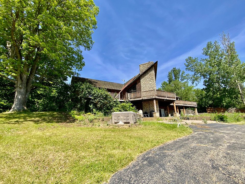 Exquisite Log Cabin Home nestled on 3 acres on the Fox River Bluff offering spectacular views of the Illinois River. If your looking for your forever home or a weekend get-a-way, come check this wonderful home out. Open floor plan, living room with sunken fireplace, kitchen has stainless appliances, island, pantry, huge dining area. Spiral stairs to loft. Master suite with luxury bath and WIC. 2 additional bedrooms and 2 full baths and laundry room all on main floor. Partially finished walkout basement included 2nd kitchen, family room, office, and several unfinished rooms including bath. Walk out to in-ground pool from lower level. 4 bay log garage( 35x57 ) with loft area and additional 30x45 metal outbuilding with water, gas, elec. Many amenities in the area featuring, Skydive Chicago, Starved Rock, Matheson Park , wildlife and much more. Sold as-is.
