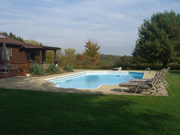This beautiful home has a lot to offer, new laminate flooring through out, new carpet in the bedrooms, all new fixtures in the kitchen and baths, the exterior on the house was recently stained and all porches painted. The home offers 3 bedrooms, the master has a 3/4 bath, a large family room with a wet bar, two fireplaces, an in ground solar heated pool and hot tub and a pool house with a 1/2 bath on 3.98 acres.