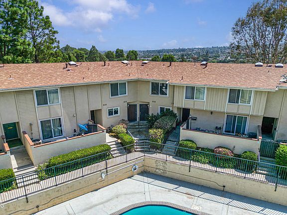 ***PRICE REDUCTION*** Views, views, views! This spacious Rolling Vista Town Club 2 bedroom, 2.5 bath townhouse welcomes you with views of blooming bougainvillea, lush green space and rolling hills. Offering 1,643 SF of living space, there is plenty of comfortable living space. While the home has 2 bedrooms, title records show that it is a 3-bedroom home. The next owner may want to downsize the huge primary suite to create an adjacent third bedroom. The heart of this home is the inviting living room, where two expansive dual-pane slider doors open onto a large balcony. This outdoor space provides an ideal space for morning coffee, evening relaxation or entertaining guests. The kitchen boasts newer appliances and offers a pleasant view of one of the complex's two glistening swimming pools. Upstairs, the spacious primary bedroom suite serves as a true sanctuary. Through its dual-pane windows, it mirrors the living room's expansive views, allowing you to wake up to the beauty of the surrounding landscape each day. The second bedroom features an attached full bath and is bathed in ample natural light. Additional features include a dedicated laundry room, direct-access oversized 2-car garage with a large storage area, freshly painted walls, and newly installed carpets. The appliances are included in the sale, including the GE gas stove, built-in microwave, Whirlpool refrigerator, and washer and dryer. The prime location, with its close proximity to shopping and major freeways, further enhances the appeal, offering a perfect blend of comfort, privacy, and convenience. The HOA dues include access to the pool and playground and picnic area. This is a rare opportunity to live at the Rolling Vista Town Club, a quiet community of homes, which offers a wide range of amenities, including two large swimming pools, a clubhouse and a playground.