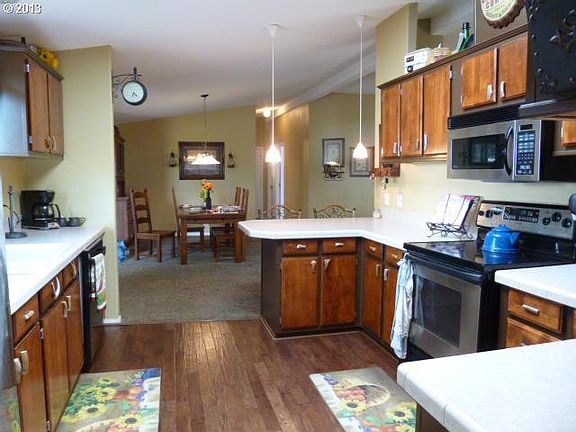 Single level on beautiful 1/2 acre lot featuring gorgeous sunsets year round. Quiet country setting, yet near all Oregon City locations & hwy 99. Interior features open floor plan, large rooms & vaulted ceiling creating an open & airy living space. You'll love the large updated kitchen complete with a breakfast bar & stainless appliances. 4 bdrms plus a den=room for everybody. Detached 30x20 outbldg great for storage & projects