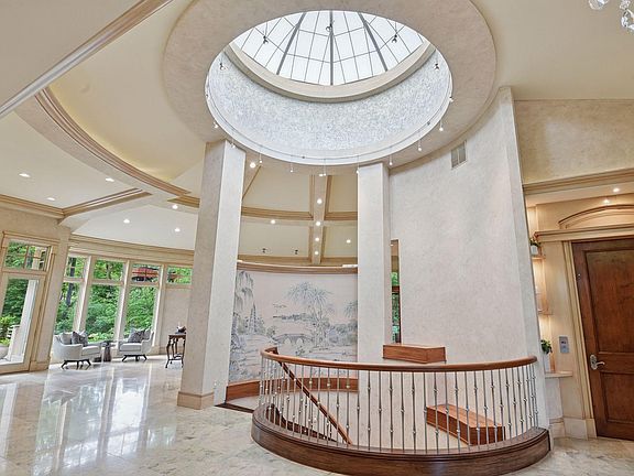– Breathtaking foyer with natural light from a striking cupola and glass doors opening to an elevated patio