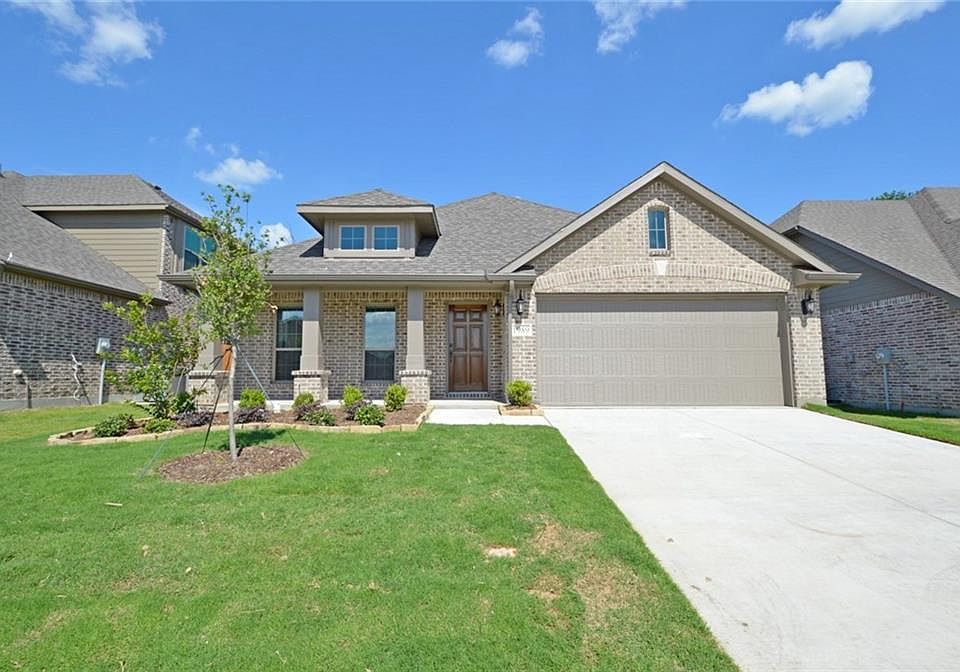 Are you ready to be the first occupant in this luxurious home by Stonehollow Homes? Handscraped hardwood floors in main areas, fresh carpet in bedrooms. Oil rubbed bronze fixtures. Granite in kitchen and both baths. Even rocker light switches. Kitchen features stainless steel appliances and a walk in pantry. Master features 9 x 6 walk in closet. Master bath features a garden tub and separate shower, as well as a gorgeous framed mirror. One of the secondary bedrooms features built in shelves, perfect for a second office. The utility room provides a hanging rod and shelf. Covered porch and covered back patio. Easy access to 380. Welcome to your new home...
