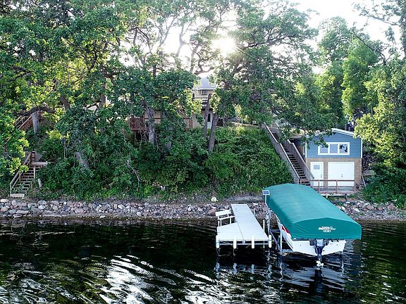 This home is located on one of the areas premier lakes, Lake Minnie-Belle. Known for both fishing and recreation. Large lot has 150 ft of lakeshore. 2 bedroom walkout rambler with 2 fireplaces, steel siding and vinyl windows. 3 car garage (28x46) and storage shed (12x16). Recently renovated boat house (14x20) with finished bonus room above. Multiple decks and patio for lake view entertaining and enjoyment. Appliances and dock included. Don't let summer pass you by without this beautiful Lake Minnie-Belle property with endless possibilities!