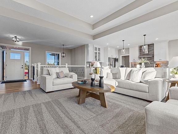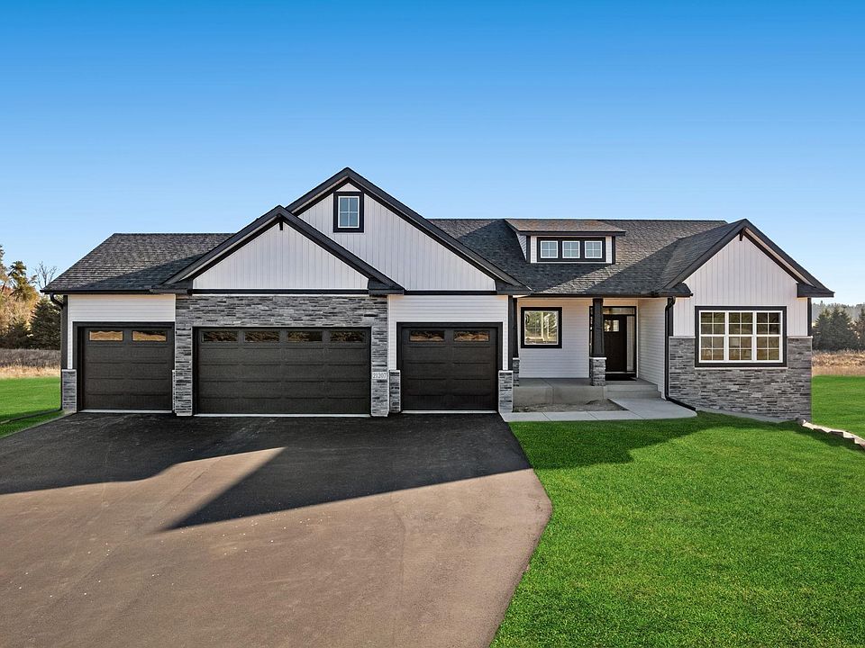 Welcome Home to the Tuscany rambler built by TH Construction of Anoka, to be greeted by a large open concept kitchen with custom built cabinets, large center island all finished with beautiful quartz tops. Offering plenty of space this kitchen also includes a walk in pantry and large dining room. The living room is one to remember with a double box vaulted ceiling to really open up the area alongside the large windows. Living room is finished with a gas fireplace, stone surround along with built in cabinets along each side of the fireplace. The primary bedroom is a homeowners dream offering vaulted ceilings, private bath with a dual bowl vanity, walk in tile shower, and walk in closet. The main floor also offers another bedroom, full bath, a large den/office, and a laundry room. Don't let me forget about the large 42x26-4 stall garage! The basement is also finished, adding a 3rd and 4th bedroom, and 3rd bathroom. The large family room also finished, with large windows, a second gas fireplace with stone surround, and an extra large patio door to walk right out to your yard! The family room also consists of a large wet bar,finished with granite tops! Yard and sprinklers included in the price! Interior pictures are of similar home.