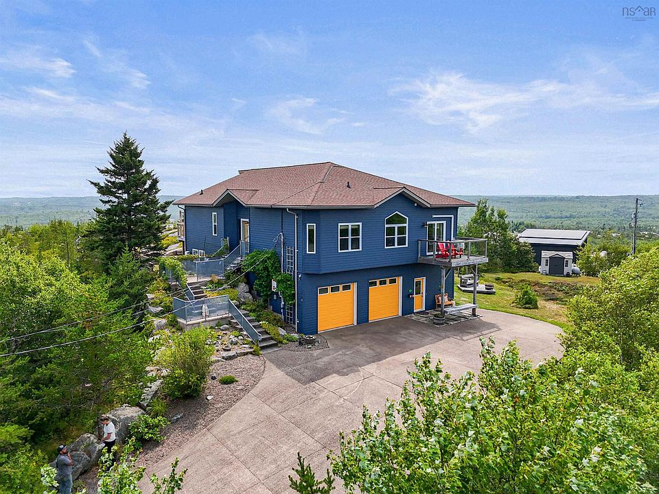Commanding one of Ferguson’s Cove’s most elevated vantage points, this beautifully maintained home captures endless ocean horizons and breathtaking land vistas in every season. Expertly crafted for both elegance and efficiency, this near net-zero home is powered by 36 solar panels, keeping total annual operating costs at an astonishing $700 per year. An advanced ETS electric heating system draws energy exclusively during off-peak hours, while a ducted and ductless heat pump, charming wood stove, and sleek propane stove provide layers of cozy, efficient warmth throughout the seasons. Inside, soaring vaulted ceilings, exposed beams, and expansive windows create a light-filled, inviting atmosphere. The open-concept living and dining areas flow into a warm, wood-finished kitchen with granite counters, gas cooktop, and large walk-in pantry. Off the front entry, a welcoming mudroom adds function, while the main floor also hosts a bright second bedroom and a charming character-filled bathroom. The spacious primary suite offers stunning views, generous storage, and a spa-like ensuite with a glass-block shower and soaker tub. The lower level impresses with magnificently high ceilings, abundant storage, and a versatile rec or flex space. It also features direct access to the double garage and a side door entrance with a second mudroom area — perfect for an active coastal lifestyle. Outside, beautifully landscaped gardens and natural rock outcroppings blend seamlessly with the rugged setting. From sunrise coffee on the deck to sunset over the water, every day here feels like a retreat. Just 15 minutes to Halifax.