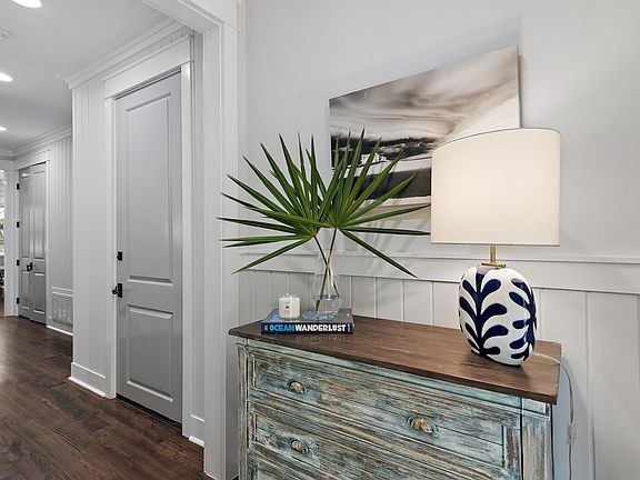 The primary suite is graced with natural light and equipped with a walk-in closet and private covered terrace spanning the entire width of the home. The luxurious ensuite affords a spa-like experience with a garden-style soaking tub, double vanity, an enclosed water closet, and walk-in wet room. coastal-themed, second-floor XL bunk room features built-in bunks, a cozy seating area with a TV, and is the perfect hangout spot for the kids. An additional guest suite currently configured with 2 twin beds and direct access to a full bath complete the top level.