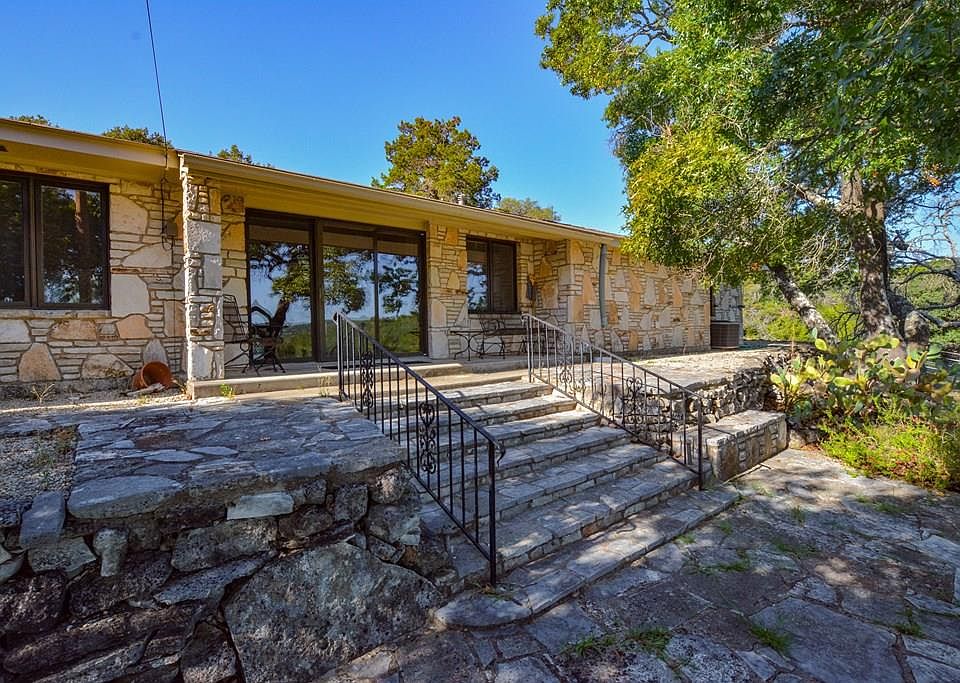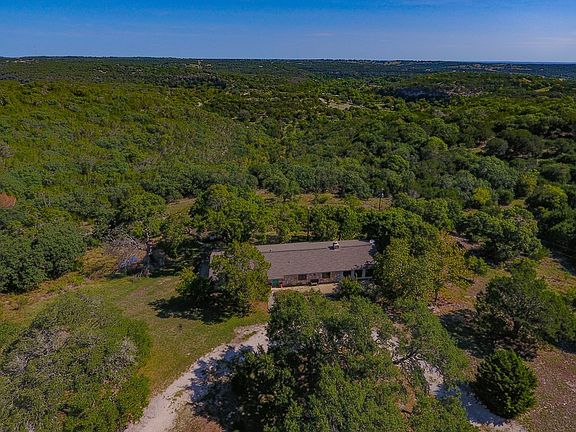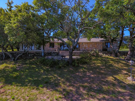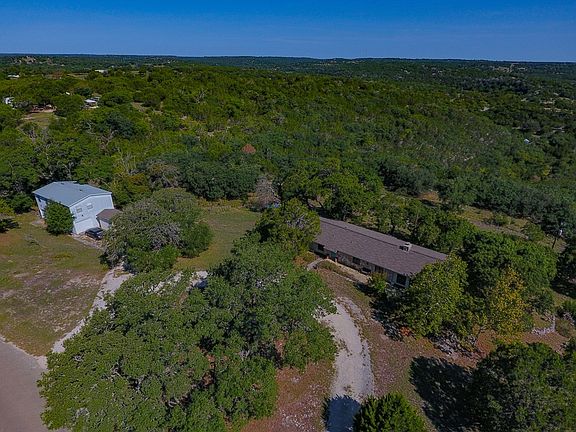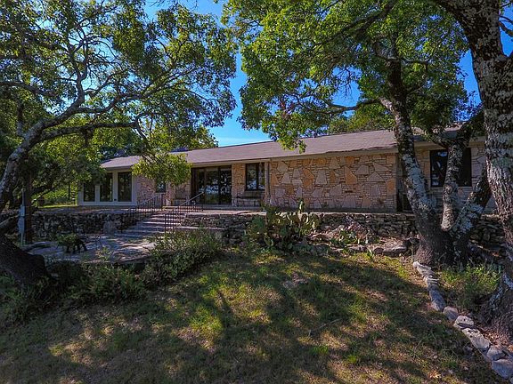 Incredible views and comfortable living await at this 11.7 acre hill country oasis! The 2 bed, 1.5 bath main home is of quality construction and has been immaculately kept. The home boasts an updated kitchen with bar that opens up into a spacious living area with beautiful finishes, such as a masonry woodburning fireplace, gorgeous white oak paneling, vaulted ceilings, built-ins, and new simulated wood flooring. A second living area adds more room for entertaining, with a wet bar and plenty of space for TV and games as well as a nice covered patio. The acreage is level and open on top, then slopes down a wooded hillside to the edge of Turtle Creek. The huge detached 24x40 garage/workshop has a nice guest quarters above complete with full kitchen, bath, bedroom, and large living area.