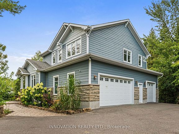 Welcome to 199 Blackberry Way, a dream residence where luxury, privacy, and nature harmonize on a beautifully landscaped 2-acre lot in the waterfront community of Dunrobin Shores. This beautifully maintained 4-bedroom, 4-bathroom family home offers a sun-drenched open-concept main floor featuring cathedral ceilings, a custom eat-in kitchen with a grand centre island, quartz countertops, stainless steel appliances, and abundant cabinetry. The elegant living room is anchored by a striking floor-to-ceiling high efficiency wood fireplace, ideal for cozy evenings, while the formal dining room, powder room, mudroom, laundry, dedicated office, and screened-in porch provide both comfort and functionality. Upstairs, the exquisite primary suite boasts a walk-in closet and a spa-inspired 5-piece ensuite, accompanied by two generously sized bedrooms with ample closet space and access to a stylish main bathroom. The walk-out lower level adds impressive versatility with a spacious family room/media room, games room, large fourth bedroom, 3-piece bath and storage. Step outside to your private outdoor oasis, complete with a saltwater inground pool, hot tub, sauna, custom flagstone patio, gazebo, and outdoor bar, perfect for entertaining or unwinding in total tranquility. An oversized 3-car garage adds convenience. Dunrobin Shores is a picturesque and highly sought-after waterfront community located just five minutes from the heart of Dunrobin in Ottawa's west end. The area showcases stunning sunrise and sunset views over the Gatineau Hills. Residents enjoy a peaceful lifestyle with quiet streets and a strong sense of community, where families and retirees alike. Despite its serene setting, Dunrobin Shores is only about 15 minutes from Kanata North, making it ideal for commuters working in the DND or Kanata tech park. Amenities such as grocery stores, pharmacies, schools, and medical services are easily accessible, offering the perfect balance of rural charm with convenience.