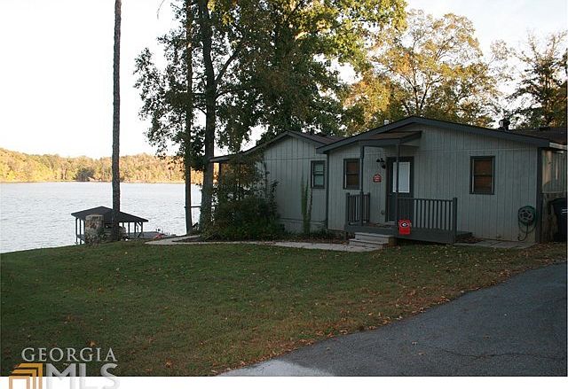 Recently renovated 4 bedroom/2 full bath cottage with beautiful waterfront view on deeded lot in deep water cove, covered boat slip and jet ski lift. New heat/air unit, windows, and water heater. Move in ready including all furnishings, plus Pontoon boat, jet ski, all appliances and storage building). Screened in rocking chair porch overlooking outside fireplace,fire pit and lake. Outside walkway features lighting from deck to dock. A Must See! Brand new roof as of Feb. 2015.
