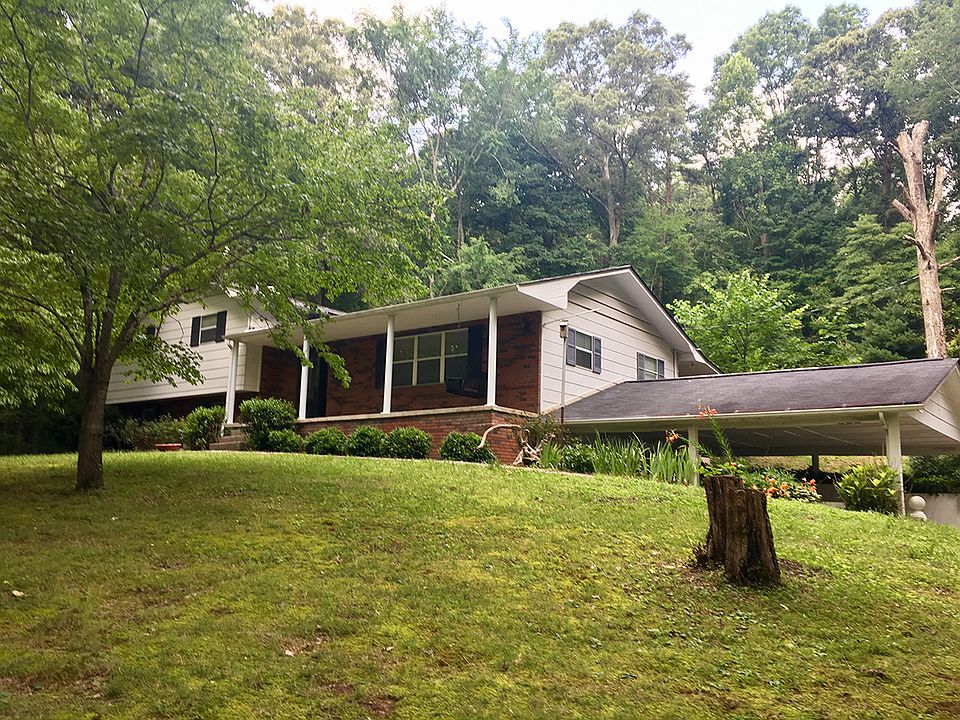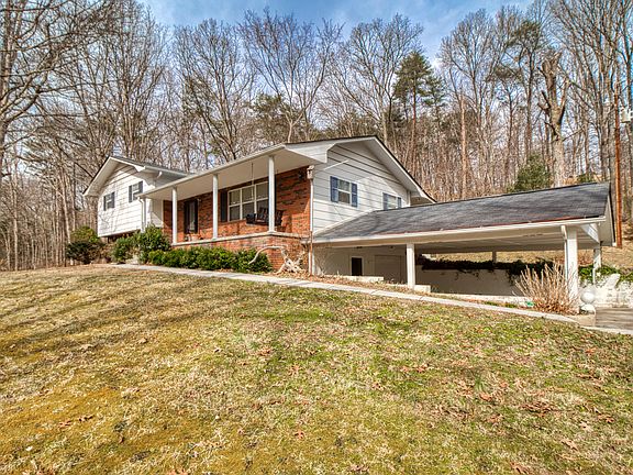Privacy and mountain views on over 4 acres! Features include large covered front porch, spacious open eat-in kitchen, formal dining/living room, large cozy den with fireplace and 1 bedroom and 1 full bath. Upper level includes 2 bedrooms, 1 full bath and Master bedroom which features a balcony perfect for sipping morning coffee! Enjoy the outdoors from the spacious covered back porch and additional deck with covered gazebo. Backyard also features a barn with electricity and a small shed that was used as a smoke house but can be used as storage shed. Detached 2-car garage/workshop features an air compressor, large heater and an additional room for extra storage. There is also 2- car carport! Private county living but minutes to grocery stores, restaurants, etc. This is a must see!