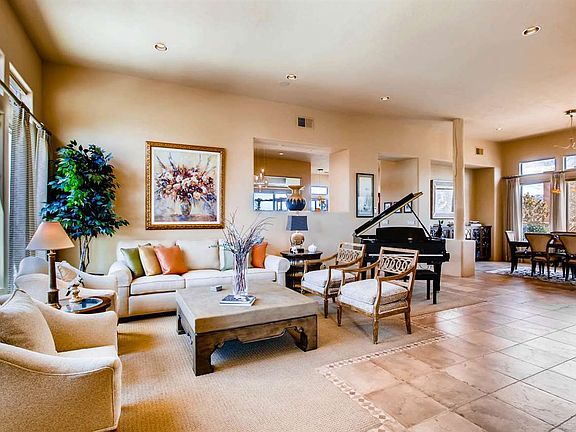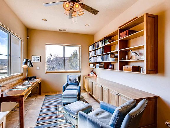 Unique within its class: in the coveted Windmill Ridge section of Rancho Viejo, set on one of the most beautiful conservation lots with sweeping horizon to horizon mountain views. Features: a large open kitchen w/stainless appliances,Wolf range top, granite, custom cabinets and lighting, breakfast nook and workstation, opens to the family room; formal living /dining areas plus home office/studio and den/media rooms; the master suite looks out to gardens and mountain views; custom closets, built-ins, shades and drapery throughout, central air conditioning, Italian tile floors, a sound system inside and out. Outside the ultimate in entertaining and living await! Beautiful hardscaped/paths, and patios, raised beds, native plants, over 38 exquisite rose bushes, a 'Vesuvio' wood fired pizza oven from Italy, custom sculpture and Italian pots. The home is meticulously maintained; New roof and canales done in 2016, hot water heater, water softener and whole house water filter added in 2016. Turnkey ready for you!