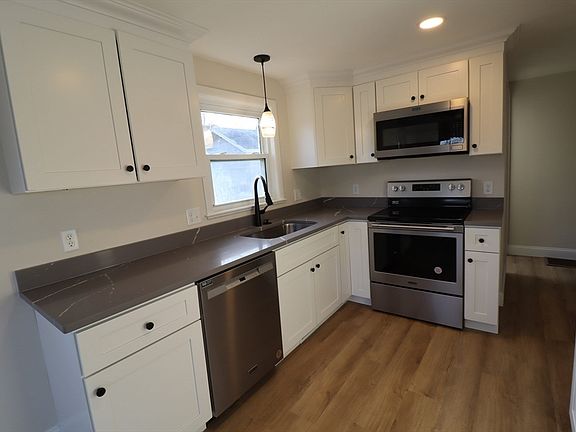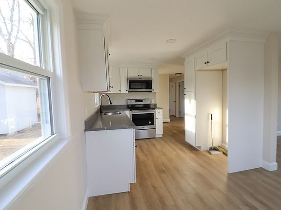 Welcome to this stunningly remodeled 3 bedroom ranch conveniently located with easy access to amenities, schools, and transportation. Spacious and inviting layout, three generously sized bedrooms and one remodeled bathroom featuring modern fixtures and finishes. The open Kitchen has stylish white shaker cabinets, beautiful quartz countertops, and stainless appliances for a sleek and modern look. Luxury vinyl plank flooring throughout offering durability and easy maintenance. New furnace, and new air conditioning system installed for comfort during the warmer seasons. All new plumbing and updated electrical system for safety and efficiency. Brand new roof and vinyl siding. Freshly painted interior in with neutral tones ready for your personal touch. Don’t miss this opportunity to own this meticulously remodeled ranch home!