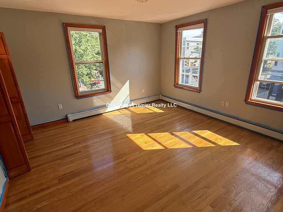 Second floor 4 bedroom, 3 bathroom duplex with 2 living rooms and a large eat in kitchen located near Central Sq. 1 master bedroom with en suite bath can fit a king sized bed. Other 3 rooms are good sizes too. Hardwood floors throughout. Laundry in unit. Some storage in the basement. Water/sewer is included. Tenants are responsible for everything else.