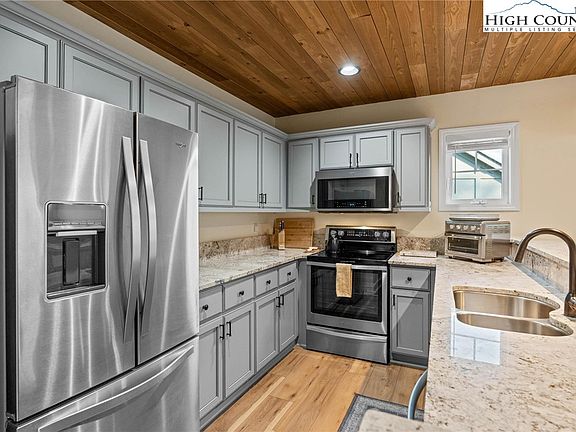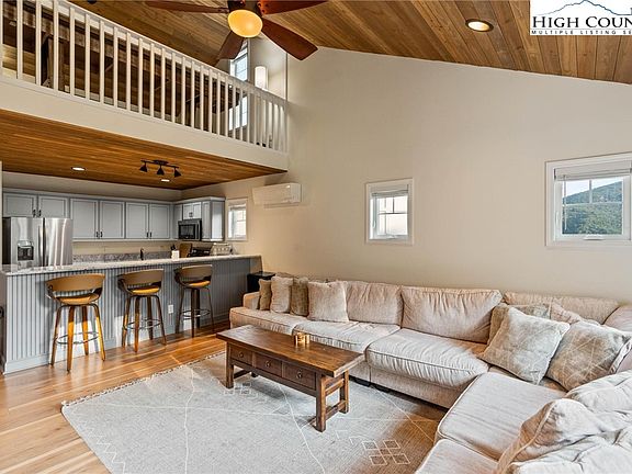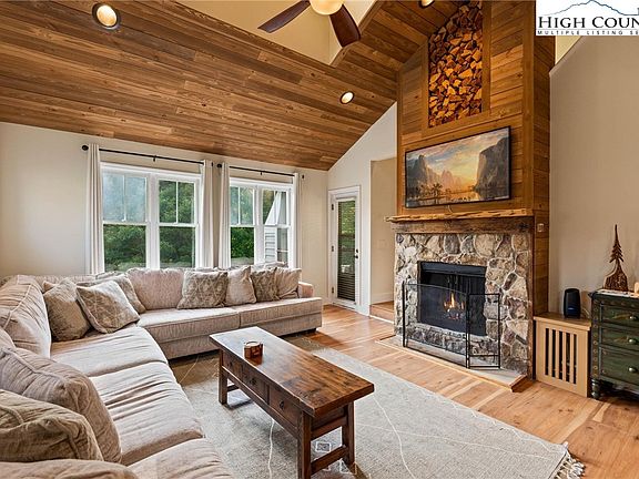 Stunning Grandfather Mountain views are right off of your back deck in this remodeled, immaculate unit! This rare find comes FULLY FURNISHED and MOVE IN READY! It features a spacious open floor plan with a remodeled kitchen -- granite counters and stainless appliances. The primary bedroom and updated ensuite bath are conveniently located on the main floor, as are the secondary bedroom and bathroom. Additionally, upstairs you will find a spacious sleeping loft and game room featuring two twin beds, a shuffleboard table, a foosball table, and an arcade game. Vaulted and wood-planked ceilings, a stone gas fireplace, and neutral upscale decor make this the coziest spot to retreat. The convenience of a coffee bar and stackable washer/dryer combo bring you everything you need under one roof. Step out onto your deck and enjoy stunning views of Grandfather Mountain and nearby trails. And listen to a trickling creek on still evenings just below the home. Local amenities include hiking trails, snow tubing, ziplining, and Grandfather Winery - all just minutes away. We look forward to your visit to view this incredible property.
