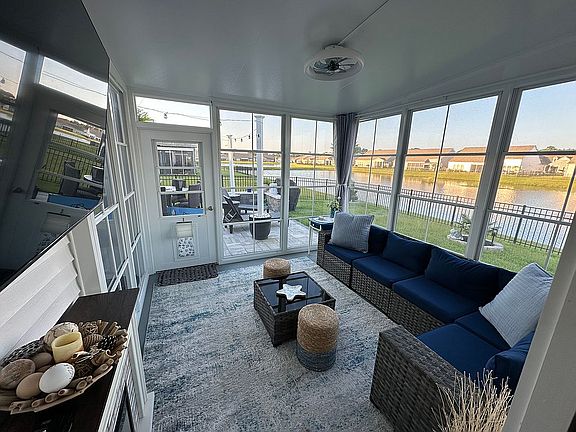 Outdoor features a custom built 3 season EZ breeze room over the 12X12 slab and custom paver patio with a retaining wall, plus a full yard irrigation system/ sprinklers. Yard is fully fenced in for your pet including a doggie door in the EZ breeze room. Some of the furnishing is optionally available.