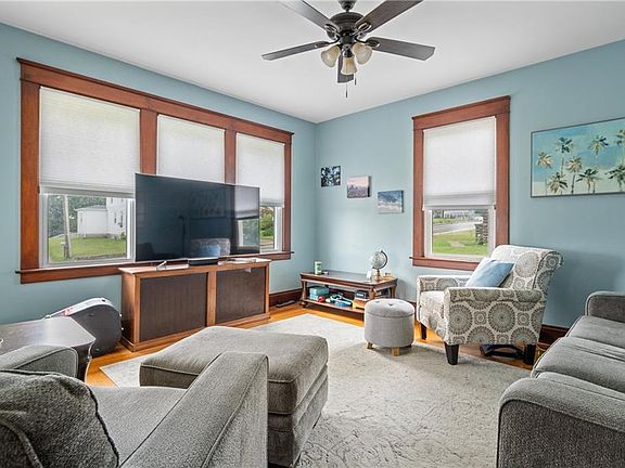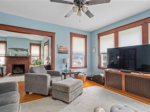 Welcome home to 199 High Street! This architectural GEM is located minutes to desirable downtown Westerly. Much of the Arts & Crafts inspired home has original interior molding in mint condition. Enjoy the stunning exterior stone work while you relax on the front porch. Soaring high ceilings provide a spacious feeling. Gorgeous hardwood floors throughout and beautiful brick fireplace. Enjoy a bright kitchen that has been nicely updated. Two main floor bedrooms and a walk up exterior ramp offer convenience. Detached garage with extended covered space for outdoor fun and Municipal connected utilities: water, sewer and gas. Vinyl siding for easy maintenance. Overall excellent condition.