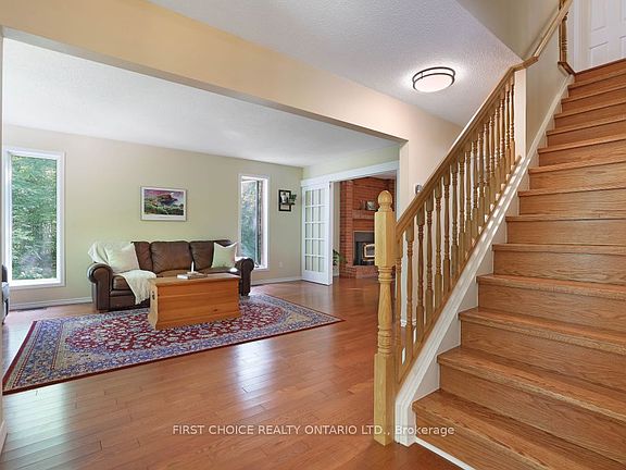 New Listing! Nestled on a bright and open 2.6-acre lot surrounded by mature trees just outside of Pakenham, this spacious family home truly has it all. Offering 4 bedrooms, 2.5 baths, and a large main-level footprint, it provides flexibility for both a more traditional layout or a casual flow that perfectly suits a growing family. A partially finished basement offers excellent additional living space, storage, and convenient garage access. Step up to the inviting front steps - the perfect spot to enjoy your morning coffee. Inside, the welcoming center hall plan guides you through the home. To the right, you will find a large open kitchen with ample counter and cupboard space, a generous dining area, main-level laundry, and a powder room. A side door leads to a handy BBQ area for easy outdoor cooking.To the left, the oversized front living room is filled with natural light and flows into a cozy second living space with a fireplace - ideal as a casual dining area, office, or reading nook. From here, continue into the stunning sunroom, featuring vaulted ceilings, warm wood accents, and expansive windows overlooking the backyard. This special room is the heart of the home, perfect for enjoying evening sunsets or family time with views of the property.Upstairs, hardwood and tile floors carry throughout. Four generous bedrooms accompany the spacious primary suite, with updated ensuite.The basement provides a recreation room, play/workout area, plenty of storage, and direct access to the true 2-car garage. Outside, enjoy the charm of a small log cabin and shed perfect for hobbies, play, or quiet relaxation.Lovingly maintained with key updates:kitchen, bathroom, basement, sunroom, tile flooring, newly painted. Blending the charm of country living with the convenience of a quick drive to Kanata and Ottawa, this home offers the perfect mix of comfort, space, and style.