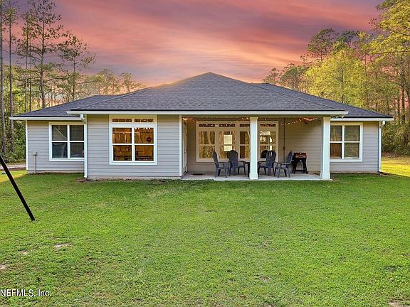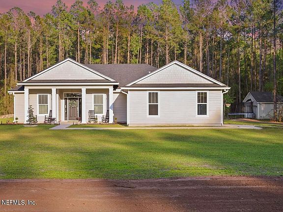 A 3 acre paradise at the end of a private drive. This beautiful custom built 2018 home has it all! 3 bedrooms and 2 full baths along with your own office space that is currently used as a 4th bedroom! Special features include a matching 20x20 detached garage that is fully insulated with mini split A/C . Home is already wired for whole home Generac system. Gas tankless water heater with a seemingly endless supply of instant hot water! Spray foam insulation in the attic keeps your electric bill well below the norm! Hardwood look tile flooring in common areas. New carpet in bedrooms and fresh paint in 2022! Perfect blend of custom concrete and quartz countertops throughout. If you're looking for peace in the country, close to everything that Baker County has to offer, this is the home for you! Located less than 1 mile from the Baker County Middle School!