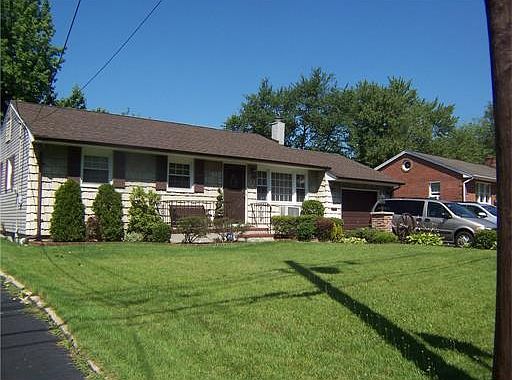 Beautiful custom expanded 3br, 2 ba, vinyl sided ranch in immaculate condition. Updated eik w/skylight,pantry & breakfast bar opens to family rm w/wood burning stove & sliders to large deck in park-like fenced yd, finished basement, huge garage, king size master, EZ access to NY train ,schools & shops. Wonderful home.