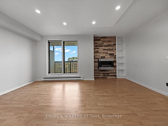 Experience quintessential downtown Ottawa living in this beautifully updated 2-bedroom, 1-bath unit with stunning unobstructed southern views and all-day sunlight. Located on the 20th floor, just a 10-minute walk to the ByWard Market, Parliament Hill, shops, restaurants, and transit, this sun-filled condo features a fully renovated kitchen (2023) with a sit-at peninsula, waterfall-edge quartz counters, stainless steel appliances, and thoughtful finishes throughout. The open-concept living and dining area boasts new condo windows (2024), a cozy stone Karacene fireplace, and access to a private balcony. Enjoy two generously sized bedrooms with double closets, an updated bathroom, in-unit laundry, and a spacious in-unit storage/mechanical room. Includes underground parking and a storage locker. Residents enjoy 24-hour concierge/security, an indoor pool, sauna, exercise room, library, and more. Well-managed building. Monthly condo fee includes water, building insurance, and management.