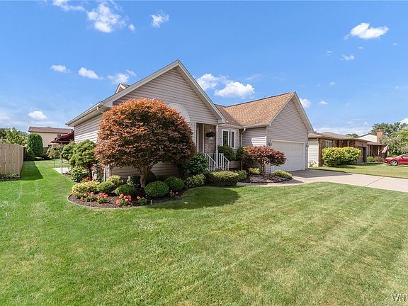 Welcome to 199 Losson Rd in Cheektowaga! This charming ranch features 3 bedrooms and 2 full bathrooms, including a spacious primary bedroom with dual closets and a private ensuite bathroom. The living room features a dramatic vaulted ceiling, creating an open and inviting atmosphere. Enjoy ADDITIONAL living space in the finished basement, ideal for a rec room, office, or guest bedroom. The home also offers convenient first-floor laundry. Step outside through the sliding glass door onto the covered, stamped concrete patio, and take in the spacious, well-maintained backyard— perfect for relaxation or entertaining. The 2-car attached garage provides ample storage with an attic covering the full footprint of the garage. Located in a highly convenient area, this home is just minutes from shops, restaurants, and grocery stores, providing easy access to everyday necessities. Don't miss the opportunity to make this beautiful property your new home! NOTE: The open houses have been CANCELLED!
