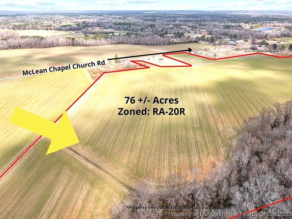 Beautiful 76 acre +/- tract with road frontage on two roads. Tons of possibilities offers itself here. Nearly all is cleared except for approximately 14acres of wooded area on back corner of property. 700' +/- of road frontage. County water and sewer available off Hwy 401. Short distance to shopping anddining. Convenient location to Ft. Bragg, Raleigh, and Fuquay Varina.