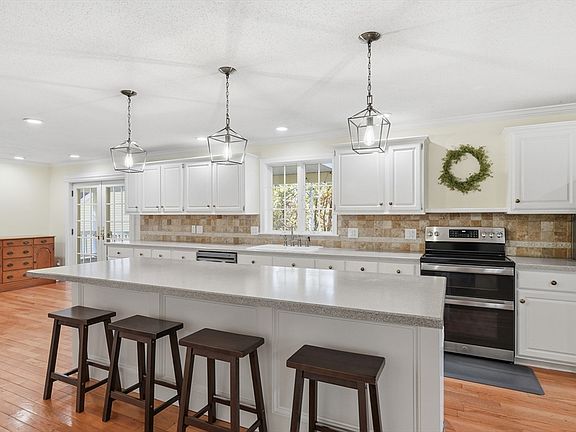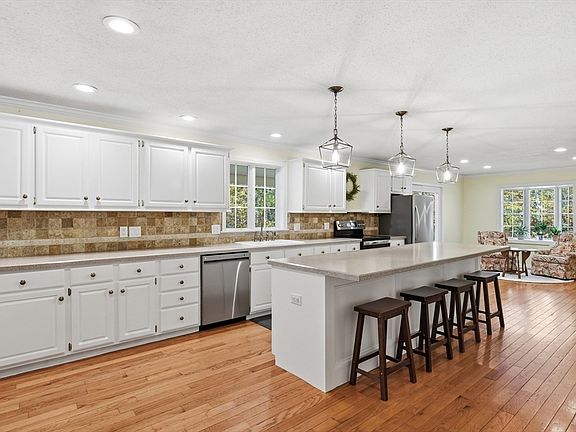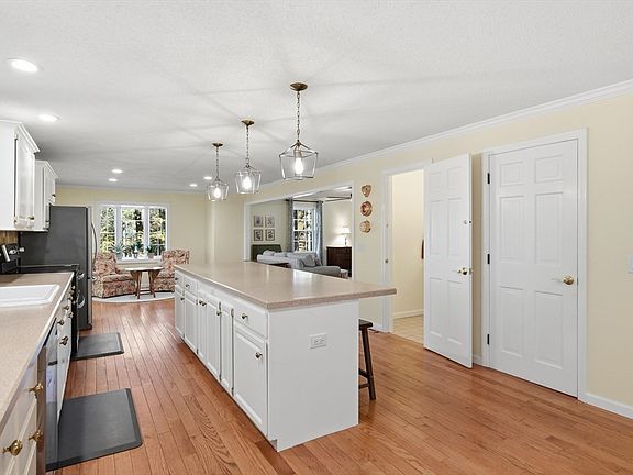 New patioWraparound porchHardwood floorsOpen floor planNew carpetingIndividual bedroom thermostatsBlooming hydrangeas