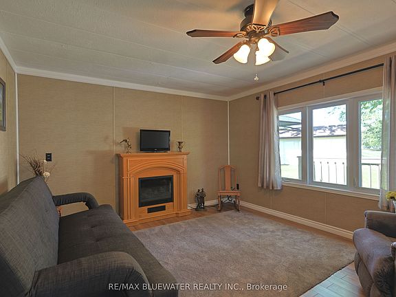 Welcome to 199 Pebble Beach Pkwy, Grand Bend in the 55+ adult leased land community of Grand Cove Estates! In this home and location package you will find great value. Offering great curb appeal with updated vinyl siding, nicely landscaped and front covered porch. Inside you have 960 sq ft of living space that has had updated laminate flooring installed throughout. Vinyl windows allowing for lots of natural light throughout. Kitchen has updated white cabinets that includes a pantry maximing the cabinet space. Other kitchen updates include counters and appliances. Modern sliding barn door to spacious BONUS room with door to back deck and window overlooking green space. Primary bedroom with double closet. Floorplan allows for a second bedroom, full updated bathroom that includes new shower insert with seat and a laundry room with storage. Other updates over the past few years include asphalt roof, furnace and more! Grand Cove Estates is a 55+ land lease community located in the heart of Grand Bend. Grand Cove has activities for everybody from the heated saltwater pool, tennis courts, woodworking shop, garden plots, lawn bowling, dog park, green space, nature trails and so much more. All this and you are only a short walk to downtown Grand Bend and the sandy beaches of Lake Huron with the world-famous sunsets. Monthly land lease fee of $879.60 includes land lease, access to all amenities and taxes.