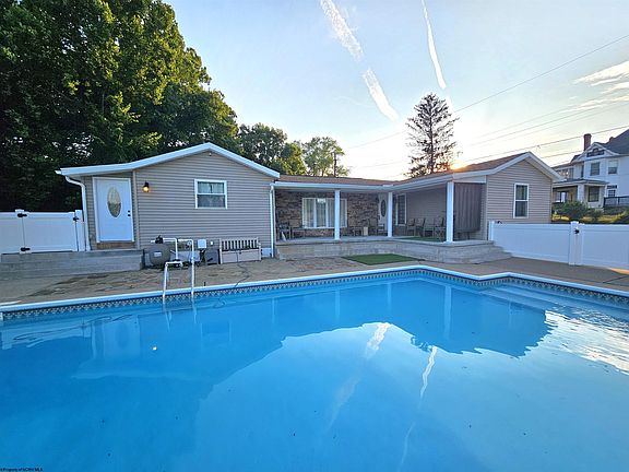 This fabulous 4-BR, 2 bath home includes a large concrete and stone patio with 20x44 in-ground pool (depth of 3-10 ft). The wrap-around covered porch & patio offers plenty of room for gatherings. Recent survey shows 1.06 acres, and plenty of flat land for outdoor fun. The decor is beautiful and includes an elegant cherry kitchen with light gray granite counters; Fiji-cherry water-resistant Pergo laminate floors and new cherry soft-close cabinets & drawers. The adjacent 12x10 dining room offers access to an expansive rear bi-level deck overlooking the expansive side yard and rear pond. The 25x14 "living room" offers high ornate ceilings, fireplace, and a bow window overlooking the pool/patio. This room has been used as a formal dining room next to the smaller dining room, and the room with 10' ceilings used as the living room. It's a short stroll to the boat docks on the Monongahela River, where you can rent docks for $400/year from May-November. This is a superb home with great outdoor space, close to the river. A wonderful place for making memories! List price based on recent appraisal.