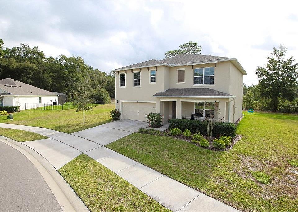 2019 built D-R-HORTON HAYDEN MODEL 5 bedrooms, 3 full baths, 2 car garage, 2,638 sq. ft. of living space, 2 story home. Located in Hunting Downs on a premium 1/3 acre lot backing to preserve. Very possibly the very best lot in Huntington Downs. Not only is it oversized, it also abuts a green area to the left of the lot providing an additional buffer to the home next door. Nicely treed across the back and plenty of open space for a pool. Inside, you might think the house is new, or a furnished model. It is that nice and that well cared for. Downstairs there is a living room, kitchen, dinette, flex space currently being used as formal dining. There is 1 bedroom on the first floor along with a full bath. Upstairs is the owners suite, loft/family room, 3 more guest bedrooms and 2 more full baths. The kitchen features dark wood cabinets, granite countertops and stainless steel appliances. D-R-HORTON built this 2 story home with concrete block on both stories.a great structural strength feature unreplicated by most builders. This community has natural gas and this home has a gas range, gas tankless water heater for endless hot water and either electric or gas for the dryer. Huntington Downs has a great location, close to downtown Deland, Just off of Orange Camp, a few minutes to Lake Helen and a few minutes to I-4. In today's market it is so difficult to find a barely used home offering a quick closing and possession. Please take a few minutes and view the professional photos and virtual tour, then call your Realtor to make an appointment to see this exceptional home.