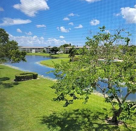 Open space 1/1.5 condo in 55+ community, on the third floor with a lake view from the bedroom and lots of natural light. Carpet throughout. Three ceiling fans, 3 year old water heater and approximately 12 year old central AC. Laundry room on floor with storage at no additional cost. Conveniently located assigned parking space. No pets allowed. Century Village amenities include: A clubhouse with a state of the art fitness center, social areas, performance theater, card room, Arts and Crafts, meeting rooms, indoor and outdoor pools, 12 tennis courts, bus transportation inside village and outside of the community to local shopping centers, two manned guard gates, two houses of worship.