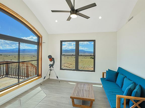 From the house, the views stretch across Ghost Ranch, Cerro Pedernal, and Mesa Prieta—landscapes that define northern New Mexico. With gated entry, lake access, and a home built for efficient living, this property offers a rare balance of comfort, setting, and thoughtful design.