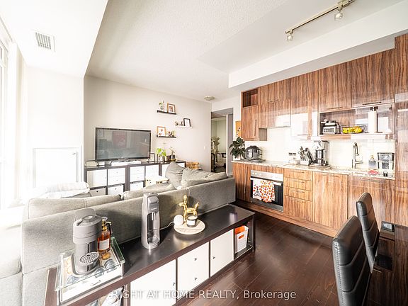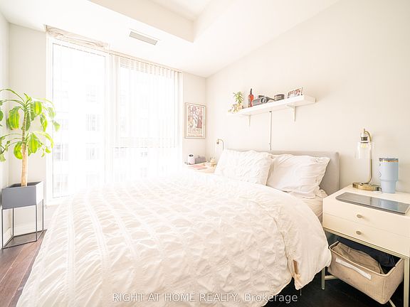 Take a full 3D interactive virtual tour of this suite and explore every detail from home. Currently tenanted at $2,750 per month, this property offers built-in income for buyers seeking a turnkey investment or a flexible downtown residence with strong rental appeal.In a market filled with one-bedroom-plus-den listings, this suite stands apart. Located in the sought-after Studio on Richmond by Aspen Ridge Homes, it is one of the few downtown buildings that allows short-term rentals within condo guidelines-an advantage that expands options for both investors and end users.The 724 square foot layout is exceptionally functional, with an enclosed den featuring sliding doors that can serve as a second bedroom or private office, and two full bathrooms ideal for shared living or hosting. The kitchen is streamlined along one wall with built-in Miele appliances, a panelled fridge and dishwasher, and generous space for dining and living. Nearly nine foot ceilings and floor-to-ceiling windows fill the suite with natural light, while a full-width covered balcony remains private and usable year-round. The primary bedroom includes a double closet, and a pantry-style closet off the living area keeps clutter out of sight. Parking and a locker are included, adding real value in this prime location.Outside your door, Osgoode Station is only minutes away. Queen and King West, Roy Thomson Hall, Rogers Centre, and many of Toronto's top restaurants are within easy reach. When you want calm, enjoy the building's resort-style amenities, including a green second-floor terrace, rooftop BBQs, gym, yoga studio, billiards lounge, party rooms, and lightning-fast FibreStream Internet.This is a revenue-smart opportunity in one of downtown Toronto's most vibrant and desirable neighbourhoods.