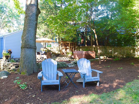 ascent lighting, hot tub, flowers, shrubs and gas BBQ. Large field stone patio with walkways for entertainment. Enjoy gazing over the fenced in backyard from a 3-season room with French doors