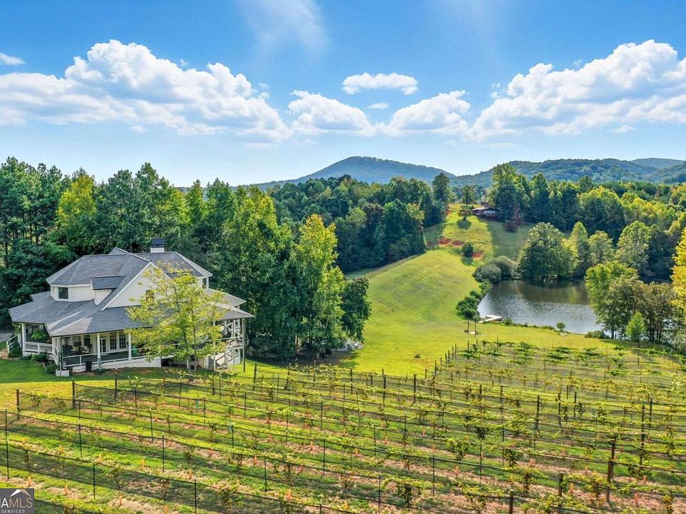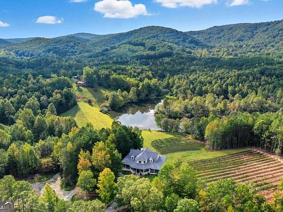 Nestled in the heart of the North Georgia Blue Ridge Mountains and sitting upon a peaceful hilltop, you'll find this idyllic 41-acre retreat. From the moment you walk through the front doors, you are greeted by sweeping views of a private, pristine 5-acre lake shimmering below, beautifully framed by the grandeur of both Henderson & Sequoyah Mountains-a setting so breathtaking, it will leave you speechless. The property features rolling greenery, mature trees, and established vineyards that frame the landscape in timeless beauty. This property is currently operating as a successful, owner-occupied Bed & Breakfast. With a special use permit allowing up to 12 weddings per year, this estate is already primed for unforgettable celebrations-and holds incredible potential as a boutique winery or luxury event destination. The residence itself was designed to embrace the views, with two expansive double-decker decks overlooking the lake and mountains-perfect for entertaining, relaxing, or simply soaking in the quiet serenity of the surroundings. Every vantage point feels like a postcard, with long stretches of vineyards, lush forest, and soaring peaks all around. Whether you envision a private mountain sanctuary, an income-generating B&B, a wedding venue, or the foundation for a world-class winery, this estate offers unmatched possibilities in one of North Georgia's most enchanting locations. Key Features: *41 private acres surrounded by mountain views (3 tracts for a total of 41.02 acres) *5-acre spring-fed lake with pristine waters *Irrigated Vineyards already planted across rolling hills *Special use permit for up to 12 weddings annually *Potential for winery or luxury event venue *Luxury High End features can be found throughout this home *Two Oversized Owners suites with gorgeous En-Suite Bathrooms-both offering French Doors to the Double Decker Porches *Gorgeous Millwork and Arched Entryways on Main Floor *High End-2 year new GE Cafe Kitchen Appliances *Two double-decker outdoor decks with panoramic views. Main level provides the perfect Southern Full Wrap Around Deck *Truly serene, European-inspired setting **This is more than a property-it's a lifestyle, a business opportunity, and a dream brought to life in the North Georgia mountains.