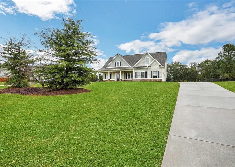 Discover this impressive 1.5-story home nestled on a spacious 1-acre lot without the confines of a subdivision. With its elevated 9-foot ceilings and a wealth of upgrades, this residence is a true gem. Designed to be an entertainer's delight, you can seamlessly enjoy the dining area, kitchen, breakfast nook, and living room all in one expansive space. Step inside to be greeted by stunning laminate floors that grace the main living areas, while the bedrooms offer cozy carpets and the bathrooms feature elegant tiled flooring. The kitchen and dining area shine with upgraded lighting fixtures, and the aesthetic appeal continues with granite countertops adorning both the kitchen and bathrooms. The main level boasts a generous master suite complete with a roomy walk-in closet. The master bathroom offers a touch of luxury with his and her sinks, a separate garden tub, and an upgraded shower door enclosing the tiled shower.