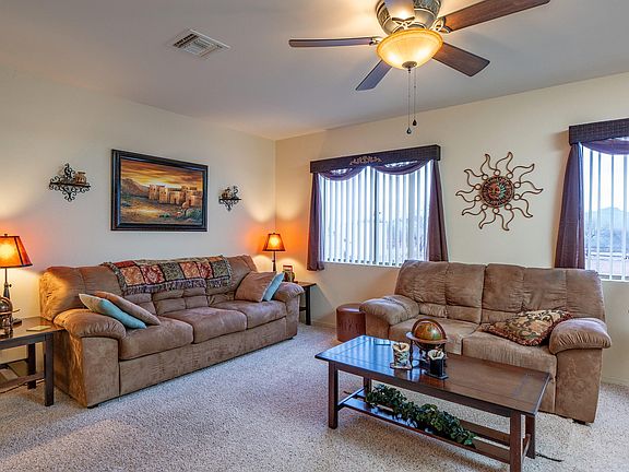 Efficient living in this 1402 SF home with 2bedrooms & 2 baths. Home is being sold furnished (with the exception of personal & sentimental items) so you can move right in and enjoy the panoramic views from the impeccably maintained 1/2 acre lot with RV garage and full hook-ups! RV garage is 40'' long, door is 12' wide, 14' tall and the ceiling hight inside is 16'. Don't delay - call today!
