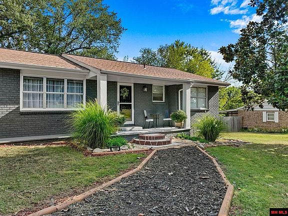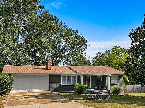 This one-level 2 bedroom, 1.5 bathroom home features an inviting covered front porch and an updated exterior offers extra curb appeal. Inside, you'll find a cozy yet functional layout featuring a wood-burning fireplace in the living area, which flows seamlessly into the dining space and charming kitchen with convenient laundry space. Situated steps away from a recreational, paved walking trail with art sculptures, a disc golf course, stone benches and Arkansas State University – Mountain Home, this home puts education and recreation at your doorstep. A spacious fenced back yard is ideal for pets, gardening, or gatherings, along with a private patio area enclosed by wood privacy fencing. An attached two-car garage offers space for storage, parking or hobbies.