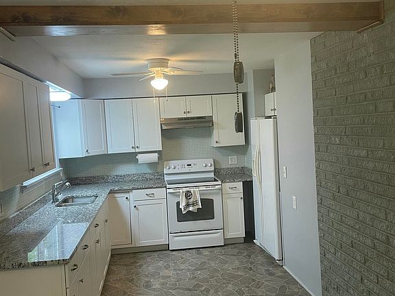 - Description: Granite Counter Top, Ceiling Fan, Dishwasher,Side By Side Fridge/Freezer, Range Oven, Stainless Steel Hood Vent, Souther View To Backyard, Wood Counters And Cabinets, Glass Tile Backsplash