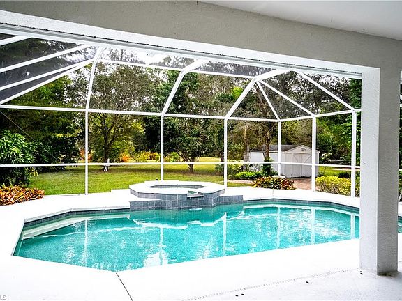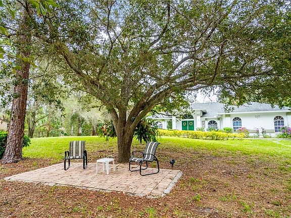 Nestled on a 2.73-acre botanical haven, this charming residence offers a pool and spa for a private oasis feel. Boasting 4 bedrooms, a den, 2 bathrooms, and a 2-car garage, this home merges space with comfort. Its large paved driveway and secure fencing enhance security and privacy. The property features beautifully landscaped gardens, front and back, setting a scene of tranquility. Inside, you'll find a family room, living room, and an open kitchen with granite countertops, ideal for entertaining. The cozy family room includes a fireplace, perfect for relaxing evenings. French doors in the family, living room, and master bedroom open to the pool, blending indoor and outdoor living. The spacious master bedroom includes dual sinks, his-and-hers walk-in closets, a soaking tub, and a tiled walk-in shower. A new roof added in 2018 adds value and assurance. Conveniently located, it's 4.2 miles to Publix, 7.4 miles to I-75, and 12.3 miles to beautiful beaches. Close to schools, hospitals, and dining, this home offers a blend of comfort and convenience, ideal for those seeking a special place to call home. Located in X flood zone, a preferred risk area. No flood insurance is required.