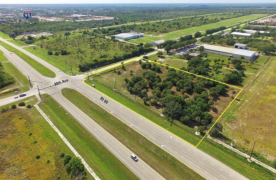 3.48 acres of prime General Commercial land featuring 485’ of frontage on SR 60 eastbound at a lighted intersection. Outstanding traffic counts and visibility just ¼ mile from the I-95 interchange. Surrounded by booming new residential developments, this site is ideal for fast food, retail, gas, tire, or drive-thru concepts. High-growth corridor with excellent access and exposure—perfect opportunity for commercial development.